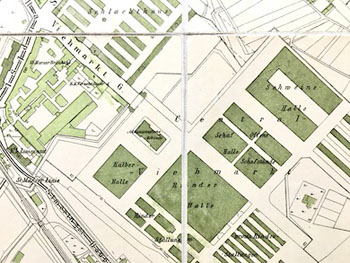 Während des Schlachtviehmarkts standen dort die Schaf- und Schweinehallen. Diese wurden im 2ten Weltkrieg zerstört, es begann der Wiederaufbau von Desinfektionshallen und einem Lieferauto-Areal